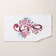 Pink treble clef with delicate, detailed pink Japanese cherry blossoms against white background painted over with light blue paint. Blooming pink sakura.
