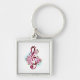 Pink treble clef with delicate, detailed pink Japanese cherry blossoms against white background painted over with light blue paint. Blooming pink sakura.