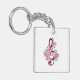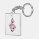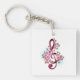 Pink treble clef with delicate, detailed pink Japanese cherry blossoms against white background painted over with light blue paint. Blooming pink sakura.