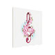 Pink treble clef with delicate, detailed pink Japanese cherry blossoms against white background painted over with light blue paint. Blooming pink sakura.