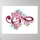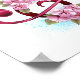 Pink treble clef with delicate, detailed pink Japanese cherry blossoms against white background painted over with light blue paint. Blooming pink sakura.