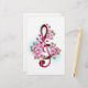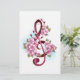 Pink treble clef with delicate, detailed pink Japanese cherry blossoms against white background painted over with light blue paint. Blooming pink sakura.
