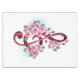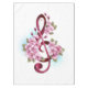 Pink treble clef with delicate, detailed pink Japanese cherry blossoms against white background painted over with light blue paint. Blooming pink sakura.