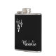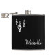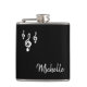 Simple musical flask, with a treble clef pattern and script typography. This black and white design has customizable lettering where your can add your own text. A fun music inspired item to celebrate in style.