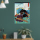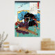 A ninja, drawing his sword from its scabbard, sneaks up on a musician playing the Koto with one hand while in the other raising a folded fan. A page of the series, Inaka Genji. From an original 19th century (1853) woodcut, Suma, by Utagawa Toyokuni. All Rights Reserved © 2012 padre art
