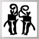 Musicians is from rock art found in Kalleby, Sweden and dates to the Bronze Age. It appears to be two people playing musical instruments made from animal horns.