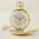 A stylish pocket watch for Muslims with the shahada printed in golden calligraphy.