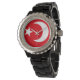 This is a watch that represents star and moon of Muslim religion (flag of Islam). The watch is made of metal and alloy.