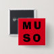 A button with simple text design of the word 'muso', meaning a musician. The capital letters are in black on a vibrant red background.