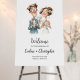 Keywords: quirky wedding welcome sign, funny wedding poster, watercolor couple art, personalized wedding décor, unique wedding sign