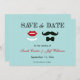 Mustache and Lips Aqua Stripe Save the Date Cards