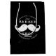 A beautiful black vintage style barber shopping bag incorporating your business details. This elegant barber shop shopping bag is ideal for barbers, hairstylists, hairdressers and hair salon professions. A simple and professional way to promote your barber shop business. A perfect moustache themed modern business shopping bag. Personalize your details to create your own unique shopping bag. Ideal for staff and employee uniforms.