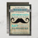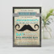 Mustache Bash Hipster Bachelor Party Invitation. Your party will be all the rage when everyone brings their mustache or bears to the party. This bachelor party invite features a rustic wood background with a distressed parchment paper overlay that holds all your party text. A grey banner towards the top read "Mustache Party" Just in case anyone was wondering. Blue, black and white serif text is laid out in a very trendy and hip poster style layout and a huge mustache is a stand out as well on this invite. A very hipster invite for any bachelor party!