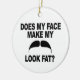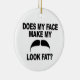 Lightweight, smooth, pure white ornament with nice sheen. Perfect size to be seen from across the room ... and to attract closer inspection! Price was great for ordering enough for the whole family! Clear, bold black design just as requested. Matches the order exactly. Just so nice!