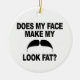 The phrase "Does my face make my mustache look fat?" with the word "mustache" replaced by an image of a big black mustache.