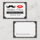 These mustache and lips themed wedding place cards are retro hipster cute! Place cards feature mustache and lips, calligraphy, modern typography, a ribbon flag, and an ornate frame over a chic black and white polka dots pattern background.