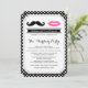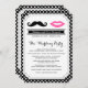 These mustache and lips themed wedding programs are retro hipster cute! Programs feature mustache and lips, calligraphy, modern typography, a ribbon flag, and an ornate frame over a chic black and white polka dots pattern background.