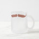 This fun mug has two similar handlebar style mustaches on either side. One is red, one is dark brown.