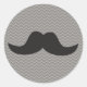 Mustache on grey chevron background classic round sticker