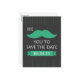 Green and gray mustache save the date cards.