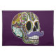 CUSTOMIZABLE BACKGROUND COLOR. Hand drawn ink illustration of a Day of the Dead sugar skull sporting a spiffy mustache! Add text to personalize or change background color and you've got one awesome placemat! This is the color version - there is also a black and white, so check out all of the available designs and products!