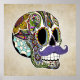 Hand drawn ink illustration of a Day of the Dead sugar skull sporting a spiffy mustache! Add text to personalize and you've got one awesome poster! This is the color/vintage version - there are also a black and white and textured background versions, so check out all of the available designs and products!