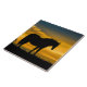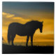 A beautiful horse against a southwestern sunset, with stunning golds and soft light blues.