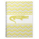It's easy to personalize this colorful chevron stripe and mustard yellow gator notebook with a name before ordering! Features mustard yellow, white, and gray chevron stripes with a mustard yellow and gray polka dotted alligator and an area you can easily customize with a name!