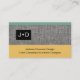 Make a noteworthy first impression and memorable impact on potential clients, or say 'thank you for your business' with a unique, trendy, classy, elegant, pretty and custom marketing tool. Designed with a beautiful contemporary seafoam green, mustard ochre yellow, and black gray colored texture weave pattern. Chic, whimsical and original design for the stylish and modern business professional which can easily be customized or personalized with your name, business or brand, and contact information. This particular strong design was made for those who like simple but sophisticated classic designs.