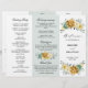 Modern elegant spring / midsummer tri fold wedding program features a bouquet of soft watercolor mustard yellow roses / peonies with greenery lush green leaves / botanical leaves / eucalyptus / succulents. Please find more matching designs and variations from my "blissweddingpaperie" store. And feel free to contact me for further customization or matching items.