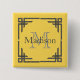 Mustard Yellow Gray Geometric Border Monogram Name Button