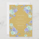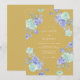 This design features a rich mustard yellow background accented by artistic watercolor floral arrangements. Soft periwinkle and mint green roses create a romantic and airy atmosphere across the composition. The vibrant color palette balances warm golden tones with cool pastel blooms for a sophisticated seasonal aesthetic. Lush foliage and delicate petals provide a timeless, nature-inspired feel.