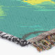 A quality printed throw has its advantages. This is a much finer weave throw than its loopier cousins, and though lighter, it is worth the investment for custom room accessorizing. The back is much prettier than the typical brown, and the fringe on the long sides very vivid, the selvage nicely done. Before photographing, I washed the throw in cold water, delicate, with a thicker woven throw the same size. On tumble dry low, this throw was dry in half the time as the other. This is a very practical quality if you use throws for furniture covers or to wrap up in frequently. The sleekness of the fabric makes it a great layer for accenting or protecting without the feeling of sitting on too much stuff. Perfect for napping or when you feel a light chill coming on. The color printing is beautiful and on this fabric, matched the design and color of my Photoshop image. This is an advantage for blending room fabrics and colors. The fringe on the short sides prints the colors from the design image and therefore varies from the side fringe. I streaked a white fractal line through the plaid pattern to give the illusion of weaving. This printed as crisp as an illusory thread, and put some white in the short side fringe, showing another advantage of print vs loomed- for artistic purposes, line lines, detail, and color integrity can be planned and preserved. My loomed throws have color limitations and more of a needlepoint texture. Print throws reproduce an exact image. The throw felt a little stiff straight out of the package, but this went away in the first delicate wash. Of course I searched the wash water for ink or bleeding and there was none.