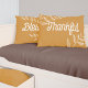 Set against a warm and inviting mustard yellow backdrop, the pillow features elegant retro-style typography in crisp white, spelling out 'thankful' on one side and 'blessed' on the other. These heartwarming words remind us of the gratitude and blessings that autumn brings.