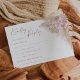 Delight in the subtle elegance of our boho pampas grass RSVP card. Set against a tasteful light brown backdrop, the soft blush tropical flowers seamlessly blend, offering an exquisite touch of bohemian flair. Perfect for weddings, engagements, or any sophisticated gathering, this card doesn’t just request a reply, it becomes a treasured piece of your event's memory. Embrace the beauty of muted tones and let your guests respond in style.