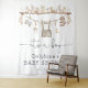 This tapestry is an exquisite blend of modern design elements and bohemian elegance, featuring a charming illustration of a baby boy outfit and an array of delightful baby elements such as toys and shoes, all depicted in soft, muted, gender-neutral tones. It's the perfect way to welcome guests to your special event, creating a warm and inviting atmosphere.