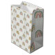 This charming gift bag features a repeating pattern of soft, stylized rainbows in muted tones of pink, mustard yellow, and green. With a lightly textured background and a standout central rainbow, it’s perfect for birthdays, baby showers, or any occasion that calls for a gentle, modern aesthetic. Durable and reusable, this bag adds a thoughtful touch to your gift presentation.