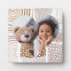 This sweet photo plaque features a modern boho print with muted taupe rainbows and circular shapes. A heart shaped photo sits in the center. This beautiful design is perfect for a child's room, or to add a beautiful delicate print to any space.