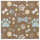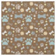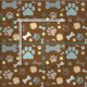 A pretty brown dog paw print fabric. This design features doggy footprints, balls and bones in muted blues on a brown background. A very modern (and practical!) fabric for your pet related sewing projects.