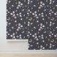A seamless pattern featuring delicate botanical elements on a deep, muted background. Soft, pastel-colored flowers and leaves create a gentle, elegant contrast against the dark backdrop, evoking a sense of calm and timeless beauty.