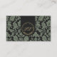 Elegant vintage-style business card with dark academia vibes, with a muted green and dark grey pattern in the back and a gold monogram. Ideal for herbalists and apothecary or occult store owners looking for a classic, refined appearance that reflects their natural and mystical craft.