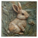 Muted Green Bunny Rabbit and Flowers Faux Relief Ceramic Tile