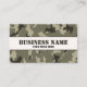 Keep it subtle yet strong with this muted green camouflage business card. Featuring a soft camo pattern in desaturated green tones, this design is perfect for professionals who want a rugged, grounded aesthetic without going over the top. The front showcases a clean white stripe for your custom business name and title, while the back includes a white box for contact information. Great for outdoor businesses, survival instructors, tactical brands, or eco-conscious entrepreneurs. Fully customizable to suit your needs.