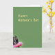 This card features a calm, wide field of muted green that sets a quiet, affectionate tone. Near the top, the words “HAPPY MOTHER’S DAY” sit centered in warm golden-yellow lettering with a slight raised look, like a gentle hug in text ❤️. The open space around the message keeps the layout airy and easy on the eyes. Down in the lower left, a delicate winged insect rests as if pausing beside someone it trusts, its black wings marked with fine white patterns and small crimson touches. Beneath it, a daisy-like bloom opens in rich fuchsia pink, with petals spreading from a soft yellow center 🌼. Soft, diffused lighting smooths the scene, bringing out the velvety flower texture and the crisp wing details without sharp shadows. The composition balances the bright headline above with the intimate nature moment below, like a quiet exchange of affection between the viewer and the scene. The insect is angled diagonally over the flower, with the patterned wings clearly outlined against the green background.