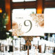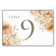 Muted Green Peach Flower Wedding Table Number