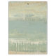 Muted Horizon II by Jennifer Goldberger. Features horizontal lines of various colors, from yellow to green to blue and paintdrip-like shapes.