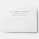 An elegant fall terracotta bohemian themed wedding envelope featuring a serif lettering accented with hand-drawn watercolor muted roses, pampas grass and palm leaf.
