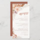 An elegant fall terracotta bohemian terracotta themed wedding menu featuring a calligraphy lettering accented with hand-drawn watercolor muted roses, pampas grass and palm leaf.