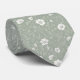 Muted Sage Green And White Wildflower Patterned Neck Tie
