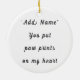 Lightweight, smooth, pure white ornament with nice sheen. Perfect size to be seen from across the room ... and to attract closer inspection! Price was great for ordering enough for the whole family! Clear, bold black design just as requested. Matches the order exactly. Just so nice!